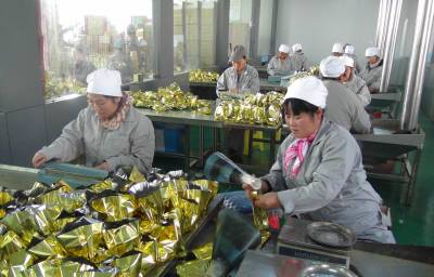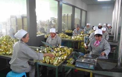 11月16日,鹤峰县鑫农茶叶有限公司生产车间里一片繁忙,工人们把茶叶打包装箱,165吨茶叶将远销阿尔及利亚。 鹤峰是湖北省茶叶大县,茶叶为第一大支柱产业,现有茶园面积25万余亩。该县立足实际,坚持走特色开发、绿色繁荣、可持续发展之路,推动茶产业转型升级,先后成立了鑫农茶业公司、青翠园公司、齐云春茶业公司等深加工企业。截至目前,全县今年茶叶产量26万担,实现产值突破5亿元大关,农民现金收入2.7亿元,出口创汇1000万美元。