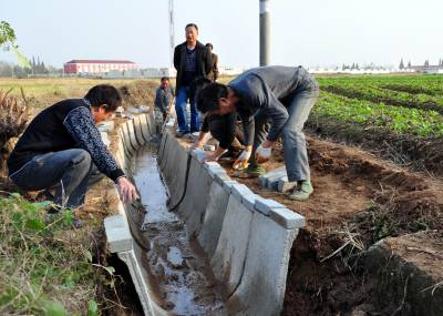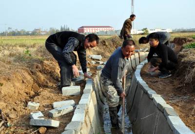 11月15日,黄梅县大河镇洪岭村村民在兴修扁担沟U型槽。近年来,该县以实施“一事一议”财政奖补政策为契机,发挥财政资金“四两拨千斤”的杠杆作用,引导农民筹资筹劳,掀起农田水利、道路硬化等村级公益事业项目建设热潮,有效解决了农民灌溉难、出行难、就医难等难题,大大改善了村民生产生活条件。(本报视界网 吴志雄 摄)