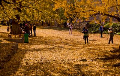 我们行车两个多小时到达目的地。尽管是周末,但这里仍然是人山人海,来观赏的人多、车多、摄影者多,尤为来自武汉人颇多,许多扛着大炮筒、三脚架、穿着“野”装的摄影爱好者在熙熙嚷嚷的人海中格外突出引人眼目。秋阳高照,温暖如春。一些亲朋好友,家人,恋人纷纷在这诗情画意般的黄金秋色里留下美好瞬间的记忆。