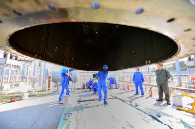 湖北秭归:三峡枢纽江南成品油码头完成首个墩台浇筑施工(客户端采稿)