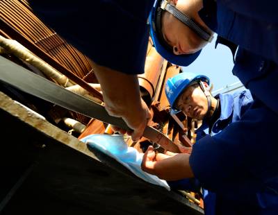 跨江架线护佑村民平安用电