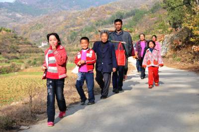 11月17日是星期六,当天下午郧县山区的谭家湾镇核桃树垭村的弯弯山路上时时看到老少行的队伍,家长多以老人和妇女为主,大多都挑着担子或背着包子袋子,他们是送孙子和孩子去上学的,孩子到了学校他们在返回山上的家里。星期五下午他们又来到学校接孩子回家,每个月每一年就是这样每个星期的不辞辛苦的往返家里与学校们弯弯的山路上。 夲报视界网周家山 摄