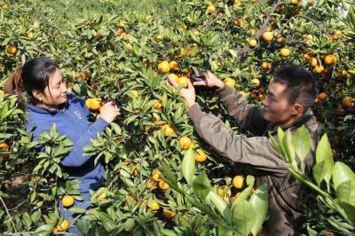 11月17日,丹江口市凉水诃镇橘农曹毅的儿子、媳妇喜滋滋地在自家柑橘园里采摘柑橘。丹江口市是全省水果大县,柑橘面积近32万亩。近几年来,该市结合脱贫奔小康试点和汉江生态经济带建设,不断加大橘园基础设施建设、柑橘低产园改造、精品果园及示范基地建设力度,带动了全市柑橘产量的上升和品质的提高,深受到广大消费者青睐。据了解,今年该市柑橘产量达3亿公斤,目前销售已过2亿公斤 。本报视界网 钱芹 摄