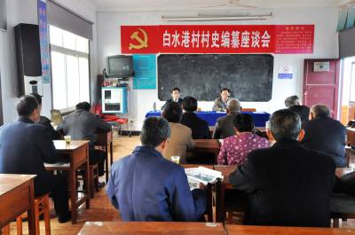 村民自编村史 宜都市枝城镇白水港村,一个紧临长江的小村庄。抗战时期,日本人曾在这里集中屠杀了147名村民,这里是非物质文化遗产—渔龙舟的发源地,这里有宜都市第一条村级水路,这里发生了太多的故事……为记录这些故事,现任村党总支副书记沈明星经过广泛走访收集,历时一年多时间完成了20多万字的村史编纂工作。11月18日,笔者用镜头记录下村民通过座谈会的形式对村史进行完善的过程。本报视界网冉德强摄