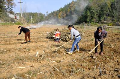 > 冬闲时节忙积农家肥(彭绍峰摄)