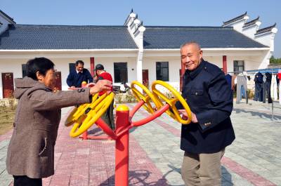 11月18日,黄梅县停前镇中心福利院老人们在使用体育健身器材锻炼身体。近年来,该县不断加大农村福利院经费投入,在着力改善孤寡、五保老人生活居住条件的同时,还经常组织老人参加文体活动,丰富院民文化生活,让这些弱势群体真正做到老有所养、老有所乐。(本报视界网 吴志雄 摄)