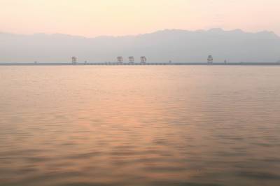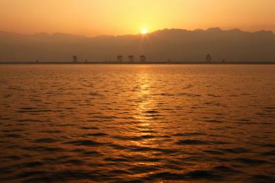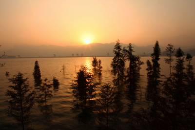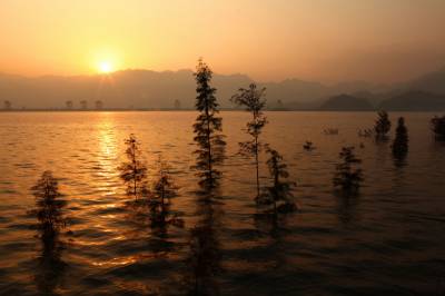 湖北南漳:一汪湖水映晚霞