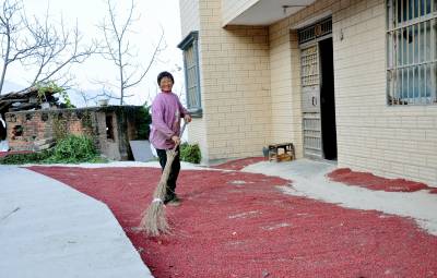 图片 留守老妈家门口赚钱 19日,一位留守老妈在晒木瓜子(方言)树籽。据了解,巴东县官渡口镇西瀼口社区七组肖祖香,今年57岁,她了解到林业部门收购木瓜子树籽,抓住商机,采集了2000多斤木瓜子树籽,晒干后卖给林业部门作种子。她在家门口可收入1000元左右。(本报视界网 穆世祝摄)