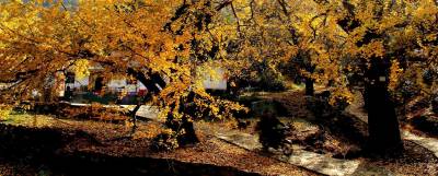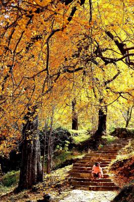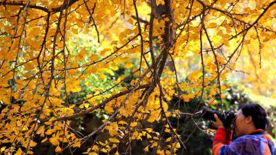 秋去初冬,满山黄叶。进入11月份,湖北省安陆市王义贞镇钱冲银杏谷国家森林公园银杏树叶逐渐变黄,每年11月中旬是观赏银杏的最佳时节,每天到景区的游客达1万多人次。