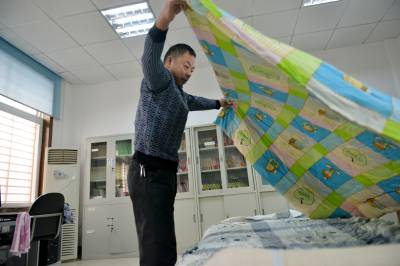 11月17日上午,低保户高道升在襄阳市樊城区前进中路社区的图书室里醒来。匆匆吃过早饭后,他忙着整理床铺,抹桌子,擦书柜。过两天就要搬到廉租房里去住了,他要把这个住了两个月的图书室好好打扫一番。