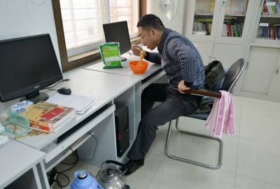 高道升坦言,他原来经常看书,还经常给报纸投稿。后来一连串的变故让他进入了另外一种生活状态。现在暂时住在图书室里,身边到处都放着书籍,这让他忍不住经常翻看,感觉像回到了过去。高道升说,图书室里有一本《毛泽东传》让他爱不释手。