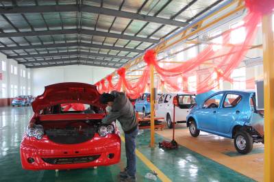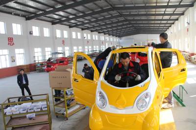 昨日上午,位于沙洋经济开发区的南洋荣升电动汽车产业园首台新能源电动汽车正式下线。新能源电动汽车工业园由南洋荣升电动车科技(湖北)有限公司投资建设,注册资金1亿元,项目总投资30亿元人民币,规划用地3000亩,分两期建设。主要从事电动汽车整车研发、生产、销售、服务以及电动汽车关键零部件生产。项目达产后将实现年产电动汽车30万辆,产值100亿元,利税20亿元,提供就业岗位3000个。图为技术人员正在进行电动车组装。本报视界网何长青摄