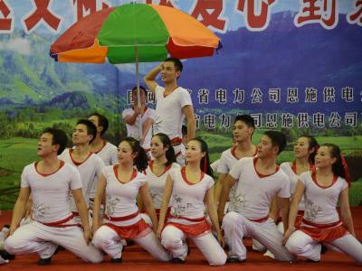 恩施供电公司职工艺术团表演了自编自导自演的12个节目,活动现场,还为基层班组送上了文体器材和厨房用品,为公司困难职工送上了慰问金。