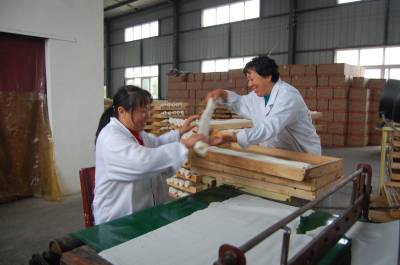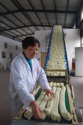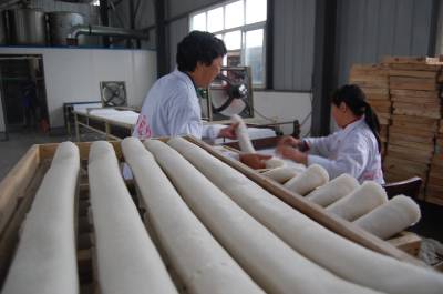 2013年11月21日,湖北王翔食品有限公司忙着生产传统美食云孝豆丝。湖北省云梦县继传统美食“云梦银丝鱼面”之后,又一个传统美食“云孝豆丝”俏销大江南北。豆丝是湖北省传统食品,具有悠久的历史。它用米浆和绿豆、黄豆、花生、荞麦等米豆浆混合后在锅上烫干晾晒制作而成。具有质软、味香、色纯、可口、易消化等特点,尤其是冬腊月和开春时节,用豆丝配以腊肉、青菜下锅同煮,腊香美味可口,是老少皆宜的食品,深受消费者喜爱。云梦传统食品老艺人王祥元,在传统制作工艺的基础上,于1999年研制发明了豆皮成型机,获得国家专利,将传统制作与现代工艺结合,利用工厂化现代工艺生产出绿豆豆丝、黄豆豆丝、荞麦豆丝、玉米豆丝、鱼肉豆丝等多个品种,年产各类豆丝150多万斤,产品不仅深受湖北消费者欢迎,还远销河南、湖南、江西、北京、东北等地区。本报视界网 陈保忠 摄