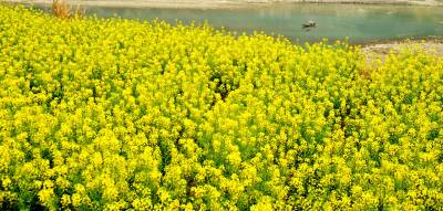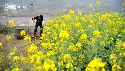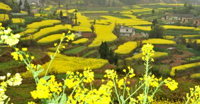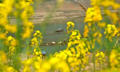 3月23日,长江巴东段沿岸,漫山遍野开满了金灿灿的油菜花,到处是花的海洋,空气中散发着沁人心脾的清香,使峡江犹如披上了一层金色的外衣。