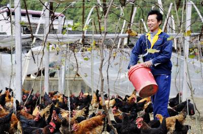 鸡、果轮作是曾山林的一个成功尝试,来到来凤县大河镇满店村曾山林的葡萄园,只见一片约8亩的葡萄场地,外面用网子给围了起来,里面的各色土鸡、乌鸡、成群结队,这就是曾山林在葡萄架下搞的生态养殖。