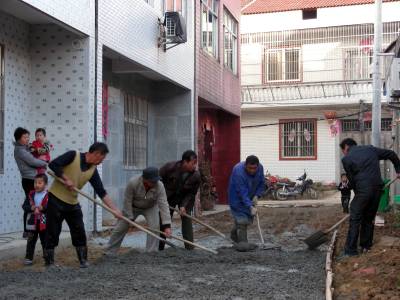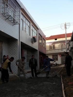 11月25日,黄梅县大河镇叶塘村组织施工人员在硬化10组村民门前道路,整治村庄环境。入冬以来,该县利用农闲时节,组织各地广泛开展以垃圾处理、污水排放、亮化绿化美化、村庄道路、公共设施配套和安全饮水等为重点的村庄整治,全县重点对16个村进行整治,并对整治验收合格的村,给予30万元“一事一议”资金奖补,大大激发了各地整治村庄的热情,美化亮化了家园。(本报视界网 吴志雄 摄)