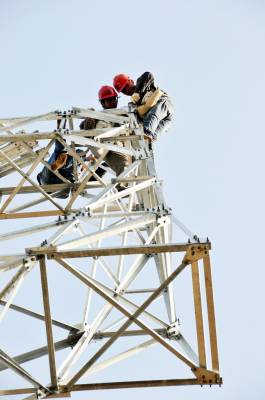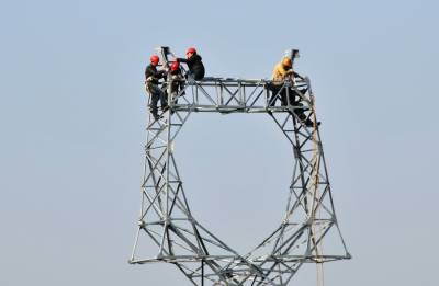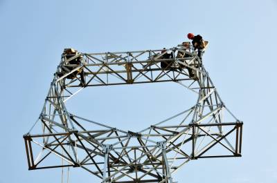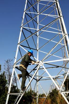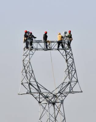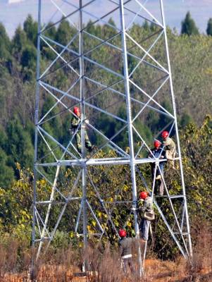 11月26日,国家电网郧县供电公司技术职工正在汉江南岸的十堰滨江新区架设110千伏高压线铁塔。该线路为长岭至蔡家岭,全长3.812千米,投资274万元,线路架设完成后将为十堰滨江新区首期规划60平方公里面积建设提供电力支持。 夲报视界网周家山 周向军摄