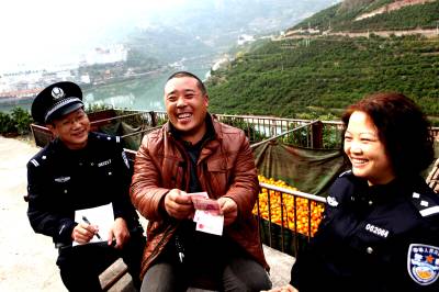 11月26日,秭归县公安局郭家坝派出所副所长林兆雄等两名民警一路追寻,在本县的水田坝乡将1500元“肇事赔款”退还给正在收购柑橘的外地客商徐学明。