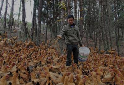 11月26日,笔者在竹山县秦古镇白果村福利院后山梁上看到,上千只成群的“青脚麻”良种鸡在松树林里时而啄食林子里的小虫,时而追逐戏弄玩耍。。。。。。养鸡主人陶俊鹏还时而吹着“哨子”吆喝着群鸡争斗抢食。