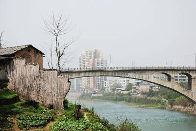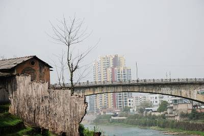老房、断墙、枯树见证了小城的历史,老桥(红江桥)旁边新建了一座现代化的斜拉桥(可惜无法将它拍在一张图上)也暂时”退休”,目前仅供行人通行,悠悠清江源源不断尤如时间老人也见证了小城的发展,远处的现代化高楼象征着社会的进步与发展。