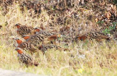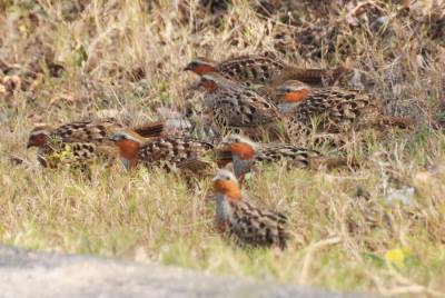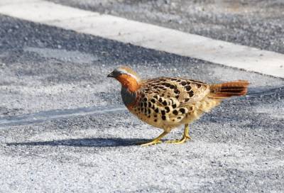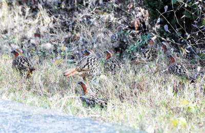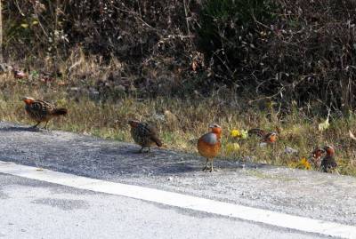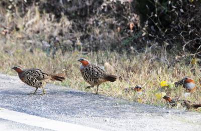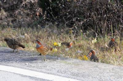 一群竹鸡公路边上晒太阳