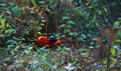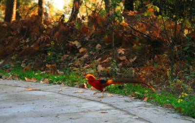 2013年11月25日,国家二级重点保护动物红腹锦鸡亮相于竹溪偏头山国家森林公园路。