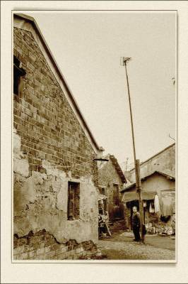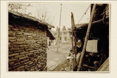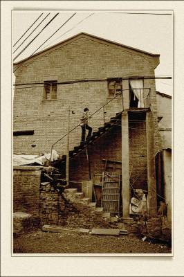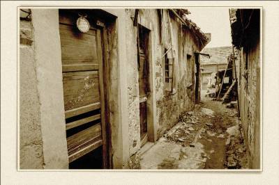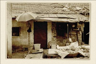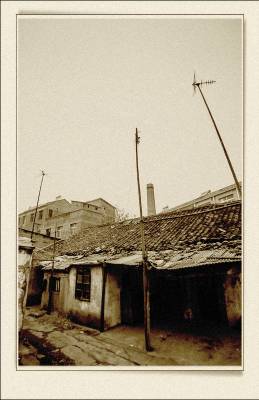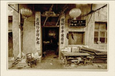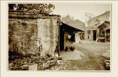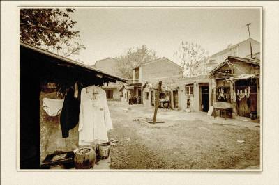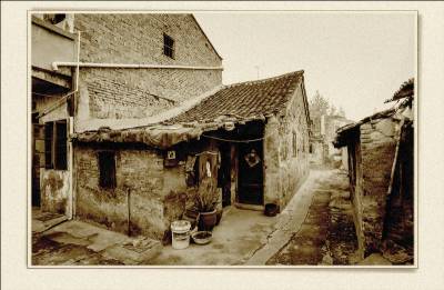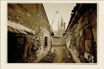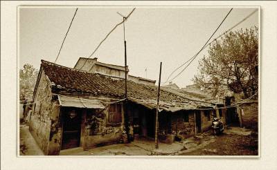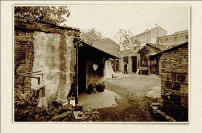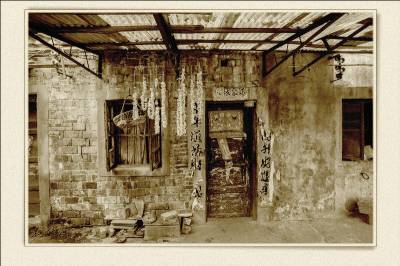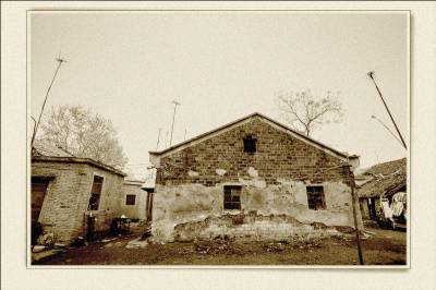 落日熔金映古宅