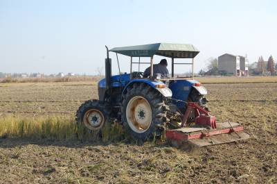 2013年11月28日,云梦县吴铺镇大塘村拖拉机忙着翻耕稻田。连日来,云梦县冬耕冬管全面展开,冬季农业开发面积10多万亩,在稳固传统粮食作物的基础上,同时在反季蔬菜等特色产业上加强田管,努力实现下一年度增产增收。本报视界网 陈保忠 摄