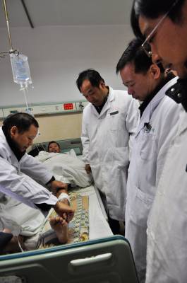 送医到基层 11月30日,宜昌市仁和医院组织十多名医疗专家赴宜都市第二人民医院行诊。专家们针对一个个病人病例进行分析会诊,并有针对性的对宜都市二医院的医生进行指导。宜昌市仁和医院与宜都市第二人医院结成联点单位后,仁和医院的专家将不定期赴宜都市第二人民医院进行指导治疗或培训医生。图为仁和医院的医生与宜都市第二人民医院的医生一起会诊。湖北日报视界网冉德强摄