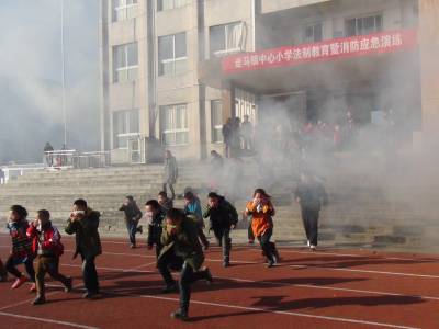 11月29日,鹤峰县走马镇政府、安监办、派出所等部门联合,走进该镇中心学校开展消防应急演练活动,全校1000余名师生参加。 随着警报声响起,学生们在警官及老师的指引下,用手巾捂着口鼻弯腰有序逃离“火场”。仅2分钟时间,全体师生到达了指定的地点。随后,警官讲解了消防常识,手把手地教学生使用灭火器,使师生受益匪浅,真正掌握在火场中迅速逃生、自救、互救,提高抵御火灾和应对紧急突发事件的能力。 (汪正玺 摄)