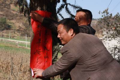 竹溪紧绷森林防火这根弦 11月30日,竹溪县水坪镇塔二湾村党支记沈奎军,村文书杨松梅等村干部正在张贴森林防火宣传标语,紧绷森林防火这根弦 ,为绿色崛起保驾护航。