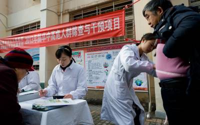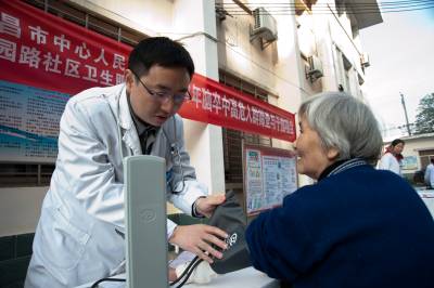 本周六(11月30日),宜昌市中心人民医院的医务人员正在为果园路社区社区居民进行脑卒中筛查,近期,国家医改重大专项——“脑卒中高危人群筛查和干预项目”在该市启动,市中心医院作为项目基地医院,将对辖区内5000多名高危人群开展筛查和评估。