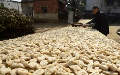 在湖北黄冈,豆丝是必不可少的年货,每年腊月,家家户户烫豆丝,处处洋溢着浓浓的年味。豆丝是以大米、黄豆为主料,配上绿豆、山药、荞麦、芦笋等营养保健材料,磨碎成浆,在锅里摊成皮,切成丝,有汤豆丝、干豆丝、炒豆丝等多种吃法。