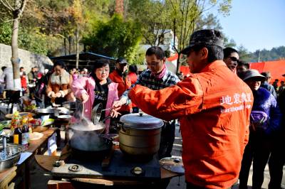 2013年12月1日,十堰“悠乐购”第三届户外野炊厨艺大赛在四方山植物园美食广场圆满落幕,一支身着黄色“地震救援”服装的20名队员在担当现场安保工作,为整个活动平安举行保驾护航的同时,成为活动现场又一道景观。