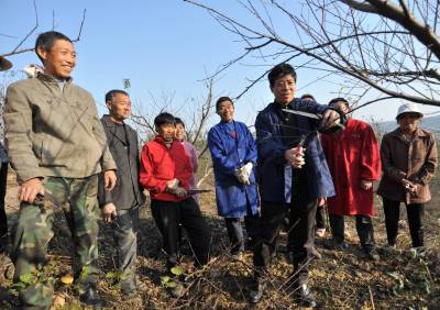 浙江来了技术员 11月29日,在宜都市全心黄桃专业合作社的黄桃园里,浙江技术员镜明达正在教社员们修剪黄桃树。宜都市枝城镇全心畈村现有黄桃2000亩,今年产黄桃13万公斤,创收20多万元。为确保明年产量及品质,与合作社签订订单农业的浙江丰岛集团从其总部调来三名技术员指导社员修剪,并有培训当地农民50多人。
