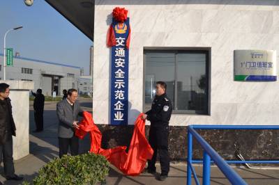 11月29日,应城市新都化工交通安全示范企业揭牌,这是应城市公安局交警大队在继宜化双环氯化工厂外,建立的第二家交通安全示范企业,该示范企业的建立将有效地解决新都化工门前交通安全隐患。(本报视界网陶茂 吕德艺摄)