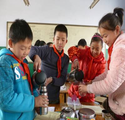 12月5日,小学生课间喝着热气腾腾的开水。近日,湖北省襄阳市襄州区双沟镇第二小学为学生配备了安全保温小暖壶,确保学生足不出室喝上开水,让学生在真情关爱中温暖度寒冬。(周学明 摄)周学明 联系地址:湖北省襄阳市襄州区双沟镇第二小学 邮 编:441111