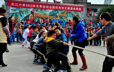 图片 巴东县民族体育在学校悄然兴起 5日,巴东县长江小学师生在为学生拔河比赛加油鼓劲。据了解,冬季以来,巴东县各校举行了不同程度冬季阳光体育运动会,学校将拔河、踢毽子、打陀螺、跷旱船、摆手舞,跳大绳,竹竿舞等民族体育项目纳入学校运动会比赛科目,民族体育在学校得到传承。(本报视界网 穆世祝摄)