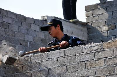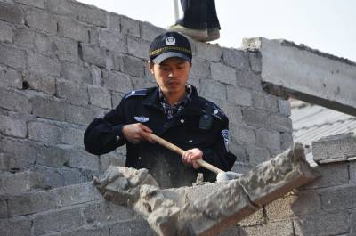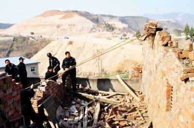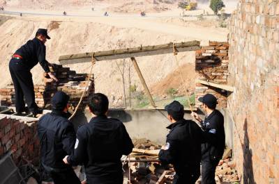 12月6日,郧县综合执法局出动100多名执法人员对武阳社区3户,牧场沟村1户突击加层建房寻求建公路索赔住房面积的违法行为依法强制拆除,共拆除违法面积260多平方米。 夲报视界网周家山 摄