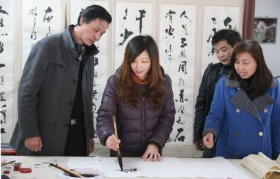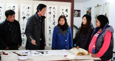 12月6日,湖北省武穴市武穴办事处西新村社区丽江豪园小区里,一群书法爱好者正在向“新华书画室”的主人--高级建筑师、书法家夏新华请教书法技艺。为了提升全社会文化氛围,武穴市委宣传部、广济诗词学会坚持文化(诗词、书法、摄影)活动进社区,鼓励一些有条件的单位和个人创办书画、诗词创作、活动室,免费给居民提供交流学习的平台,使小区的环境得到美化,市民文化素养得到熏陶。本报视界网冯怡红摄