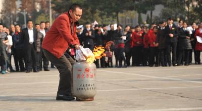 6日,潜江宾馆服务员、厨师、各部门经理等参与实战消防演练。当日,潜江市在潜江宾馆开展冬季消防安全演练。演练包括突发火灾应急疏散、液化气体、易燃物体火灾消防灭火等内容。此举进一步强化了市民消防安全意识,增强了他们防灾避险,消防灭火本领。掌握公共娱乐场所逃生自救知识。 吴燕军 摄
