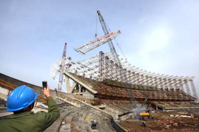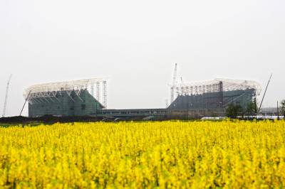 3月25日上午,荆门生态运动公园体育场钢结构圆满封顶。荆门生态运动公园是湖北省第十三届运动会主场馆,位于荆门市掇刀区,是集训练、竞赛、运动休闲等多功能于一体的大型城市体育主题公园,总投资4.3亿元,建筑面积约5.98万平方米,总占地面积659亩,计划于2010年6月建成并投入使用。视界网摄影师朱运兵摄