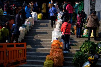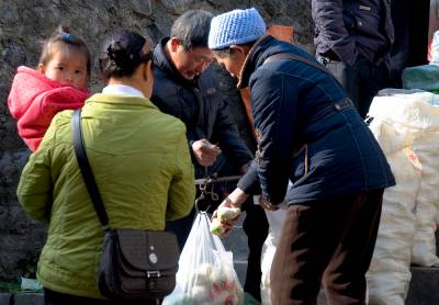 2013年12月7日,在黄金洞集镇上光明坝小组育龄妇女们正在出售大头菜,近年来,金洞司村光明坝小组利用闲置土地发展小产业,种植的大头菜常年走俏,今年种植80余亩,实现产量近40万斤,实现产值32万元。据了解,该组育龄妇女杨红英今年种植4亩,实现收入11000余元。本报视界网吴朝军摄