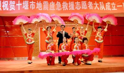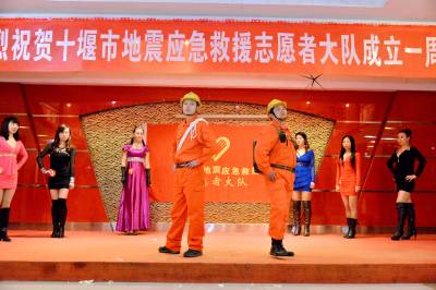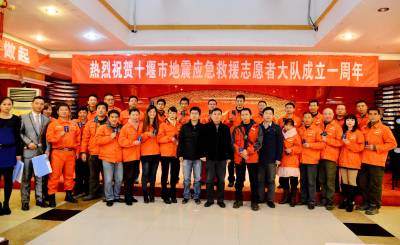 当日下午,十堰市第一支地震应急救援志愿者大队举办的建队一周年联欢晚会圆满落幕,联欢会上,市地震局副局长熊军为67名地震应急救援志愿者颁发了志愿者证,成为十堰市首批持有中国志愿者证书的队员。