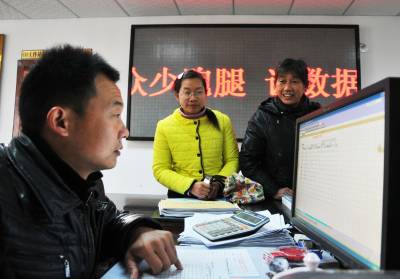 9日,巴东县官渡口镇五里堆社区干部正在为群众查询粮食综合补贴到位情况。 为了缓解农民办事难、办事贵等现象,巴东县官渡口镇率先启动9个村(居)“农民办事不出村”信息化系统和网络服务平台建设,农民不需要进集镇或县城,在所住村(居)委会就能完成需要办理的事项,缩时省钱。自今年6月以来,该镇9个村(居)委会和镇便民服务大厅共受理群众办理事项725件,办结693件。据了解,全县120个村(社区)群众提前享受便民利民服务,计划三年内建成全县491个村的办事系统全覆盖。(本报视界网 梁勇 摄)