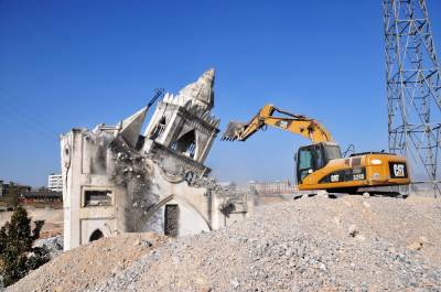 12月9日下午,挖掘机正在最后拆除郧县有百年历史的天主教堂主楼。因国家南水北调中线工程郧县天主教堂正在丹江囗库区水位线下,加之建设库岸防护堤,郧县天主教堂又将被回填土方覆盖,经文物专家反复论证后成为丹江囗库区最后一座拆迁后靠复建的古建筑。