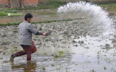 3月25日,笔者在竹溪县城关镇烧田坝村看到村民忙着整田、撒底肥,准备种藕。下两天雨后刚晴,竹溪县田野一片忙碌,整田、施肥、育苗,农民忙着春播耕种,争取今年有个好收成。今年该县分区域发展特色产业,推行”公司+基地+农户”的产业模式,实施订单农业,大力发展茶叶、药材、林果、大棚蔬菜、贡米等特色产业,同时兴建相应的产业示范基地,促使农业产业化,促农增收。社界网签约摄影师颜义众报道邮编:442300电话:15571411673