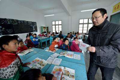寺坪镇中心学校考虑到他的辛苦和困难,好几次都想让他再回镇中心学校教书,结束支教生涯。而阮班琼对5所走教的村小师生有了深厚感情,对巡回支教的生活也早已习惯。他说:“看到孩子们对英语这么渴望,对我这么依赖,我感到很欣慰,‘走教’的生活是辛苦的,但是和孩子们在一起,我感到很快乐。为了农村边远地区小学孩子能学到英语、享受公平教育的阳光,我乐意把辛勤的汗水继续洒在这条充满希望的路上。” (本报视界网 杨韬 俞刚旭 摄)