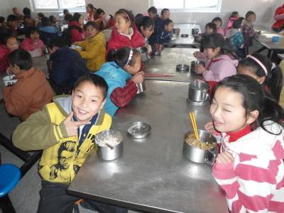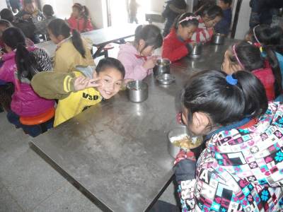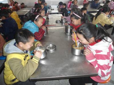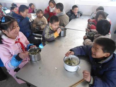 12月11日,郧县五峰乡德勤希望小学学生们在开心地吃着营养餐。去年3月,该县启动了农村义务教育学生营养改善计划,建立学生实名制信息管理制度和管理系统,新建或改造学校食堂(伙房),采用学校食堂(伙房)供餐方式,科学制定每周营养食谱,确保每一个学生吃上每天3元标准的免费营养餐。 (视界网 周学山 摄)